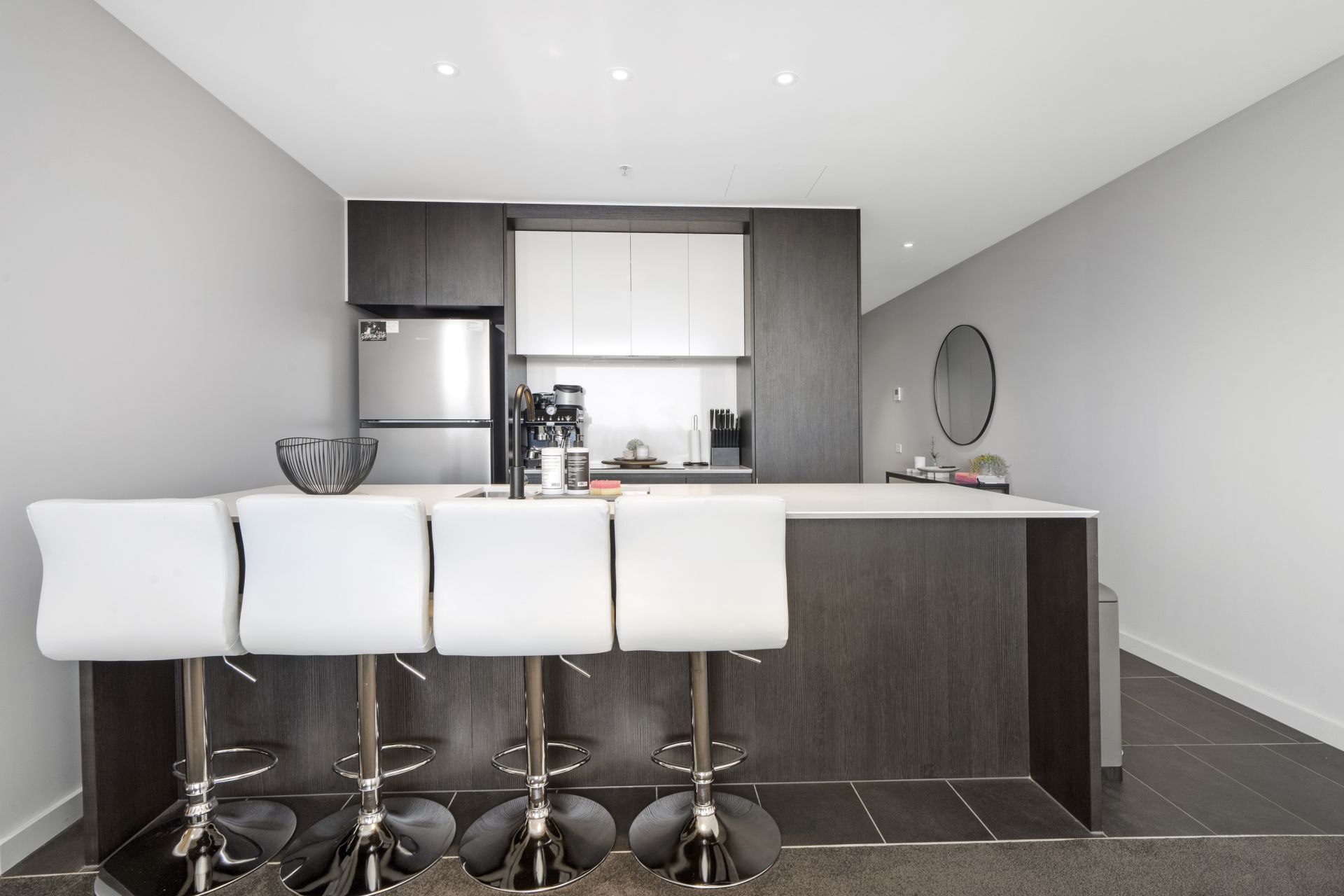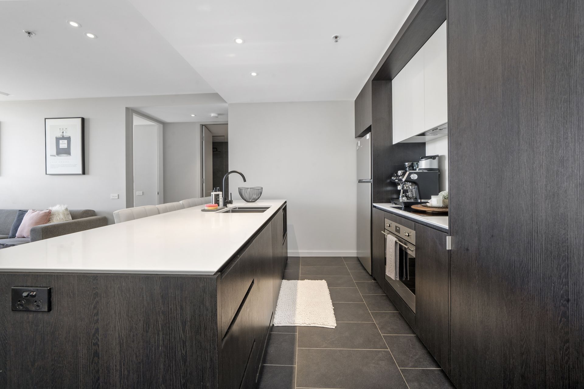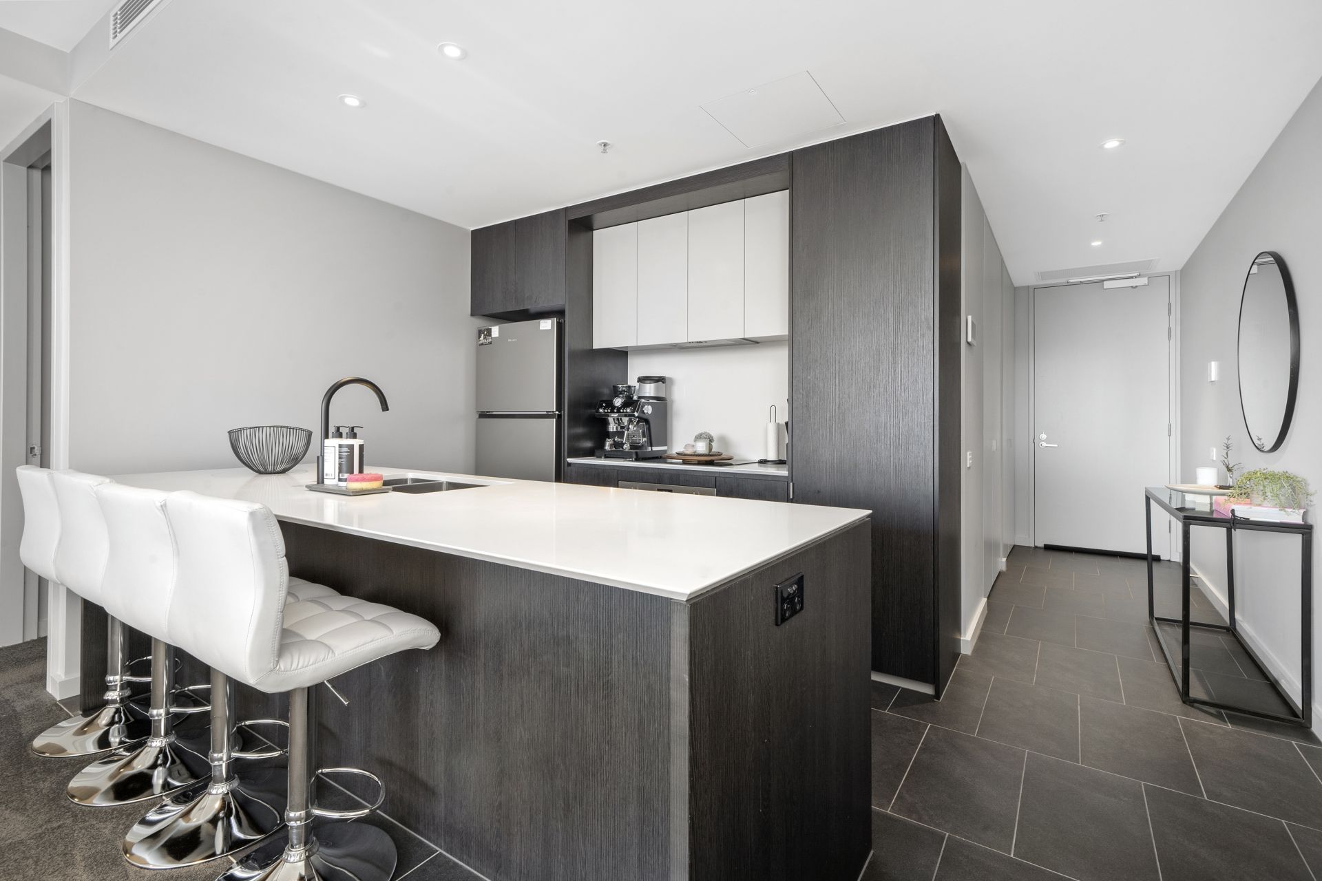 - Modern kitchen with stone benchtops and SMEG appliances