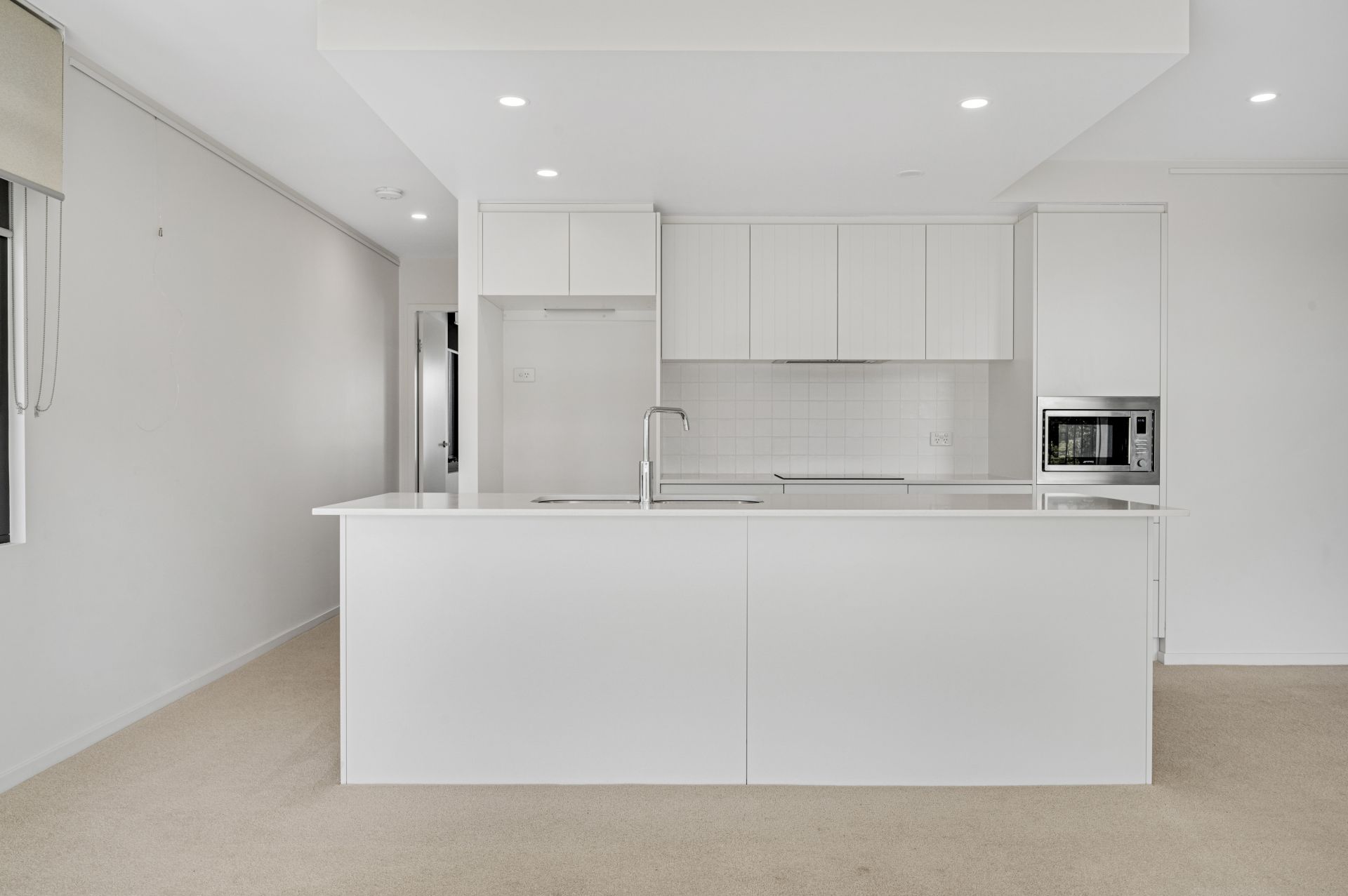 The kitchen is both stylish and highly functional, featuring stainless steel appliances, electric cooking, an integrated microwave, dishwasher, ample storage, and a generous stone-topped island bench, perfect for casual dining or conversation while preparing meals.