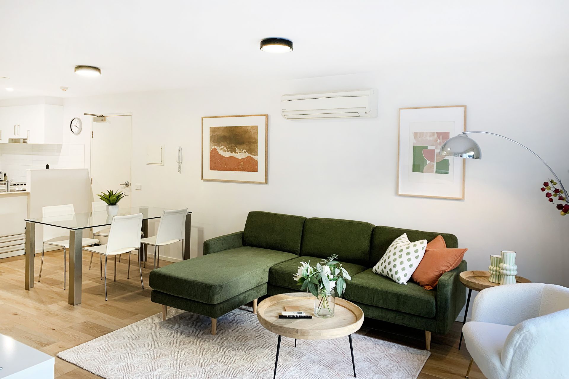 - Large open plan living, dining and kitchen