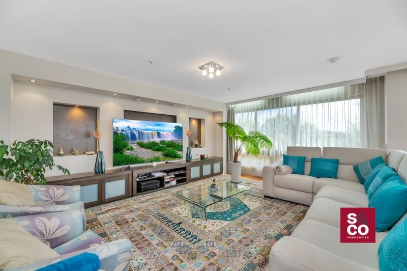The open plan living and dining area, along with a spacious kitchen offering plenty of storage, exudes sophistication and functionality with a stunning backdrop. Three generously sized bedrooms provide versatility, while the exclusive complex features just two apartments per floor for utmost privacy.