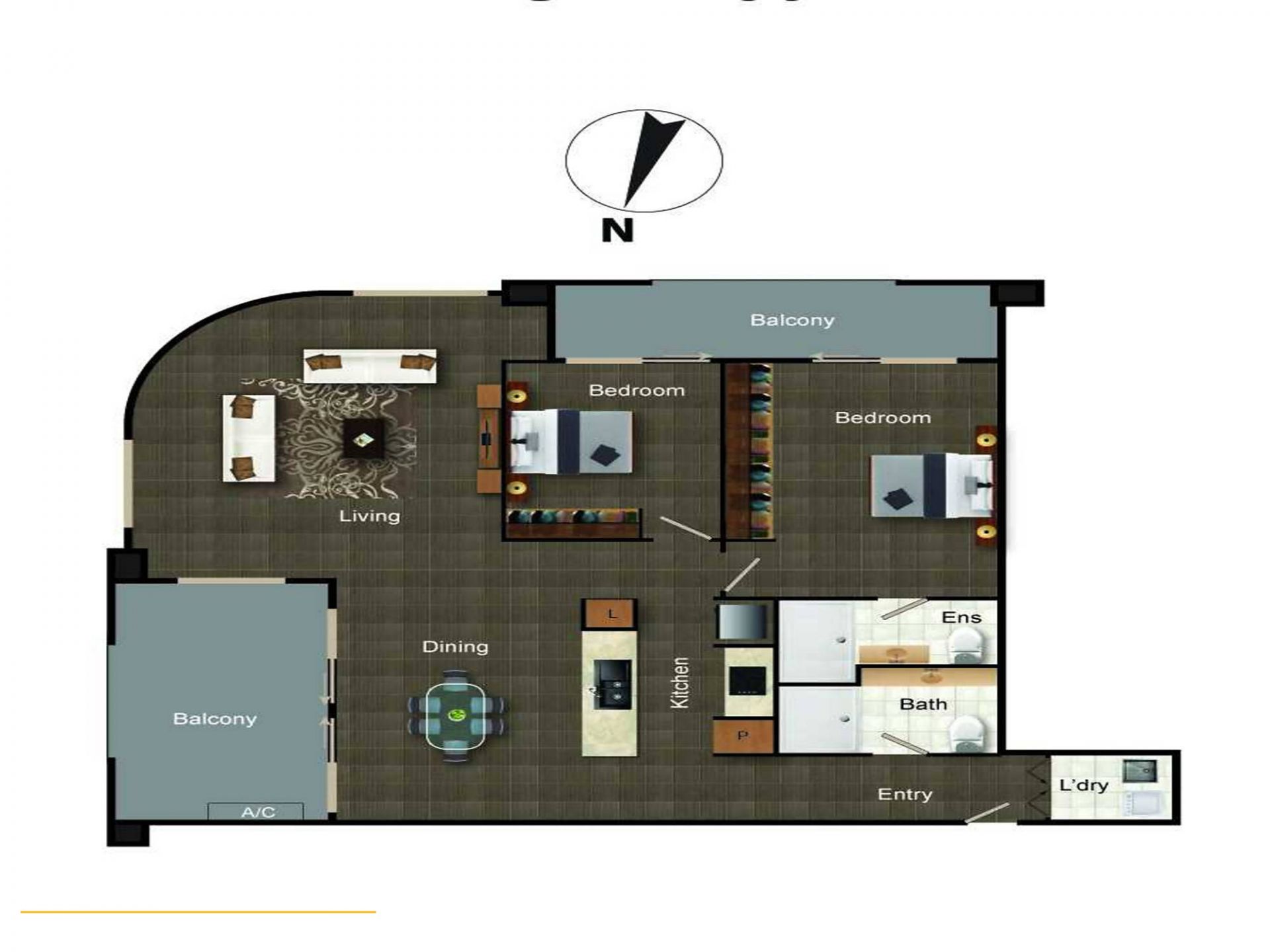 - Balcony access from both bedrooms