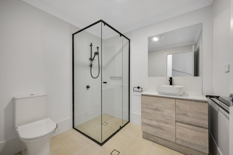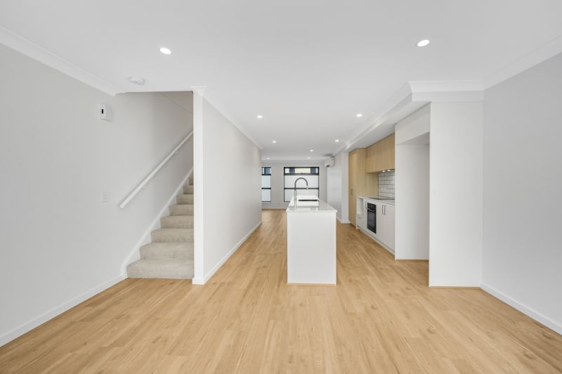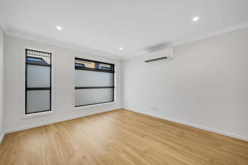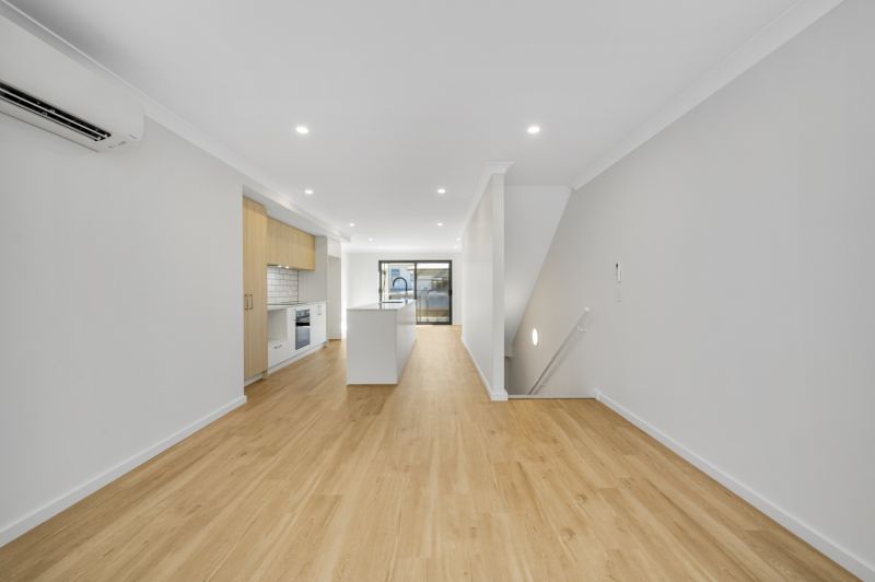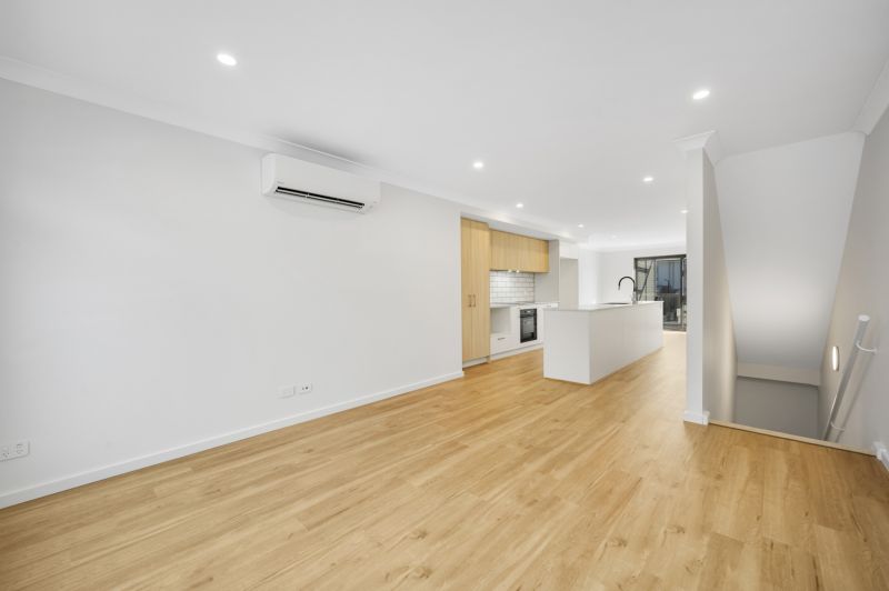 Moving to the middle level, the home opens into a bright and airy open-plan kitchen, dining, and living area. Designed for both comfort and connection, this space flows effortlessly onto a private balcony-perfect for your morning coffee or evening wind-down. A split system air conditioning unit services this level, ensuring year-round comfort.