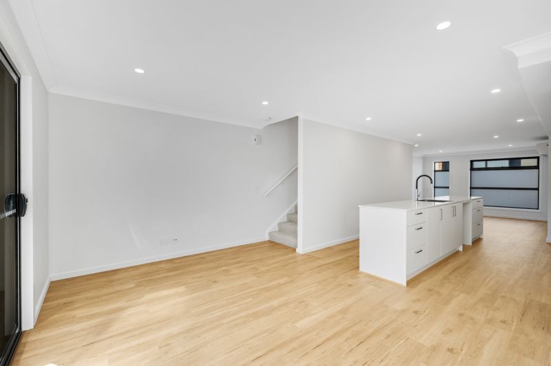 • Light-filled open-plan living, dining, and kitchen area