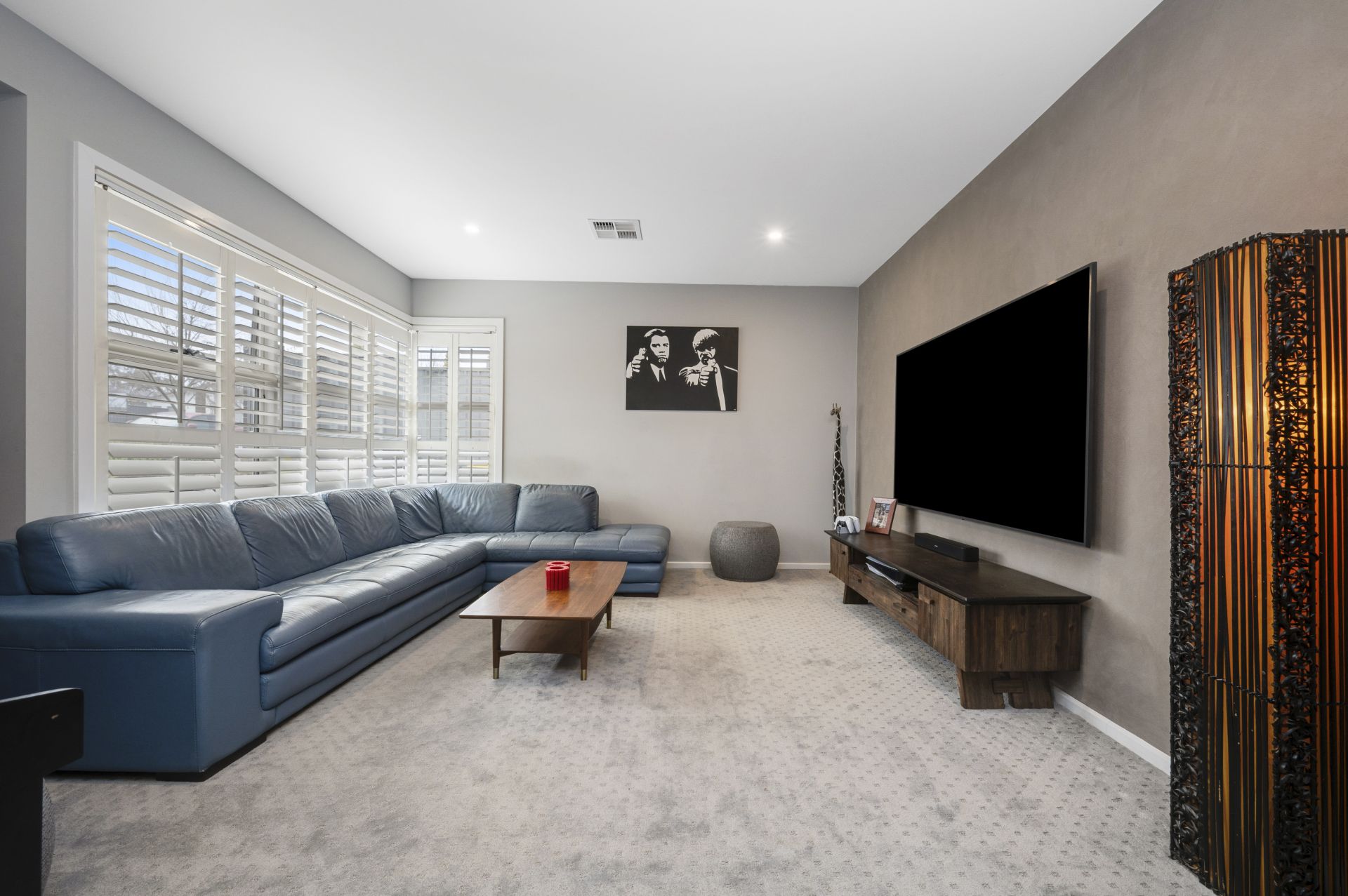 - Stylish split-level design with timber flooring and plantation shutters throughout
