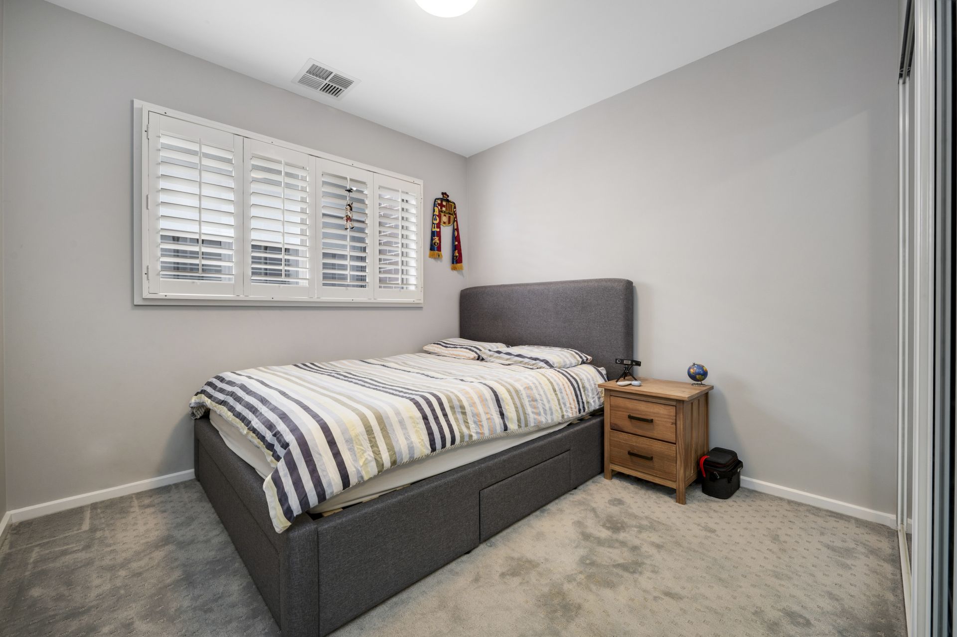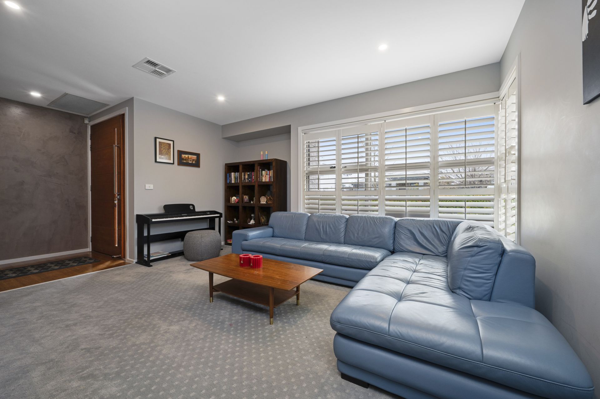 Sunlight pours into the north-facing lounge, bouncing off timber floors & rising up to meet the dramatic vaulted ceiling. Plantation shutters frame the windows, inviting in soft light and total privacy. The split-level design flows effortlessly, creating spaces to come together & quiet corners to retreat.