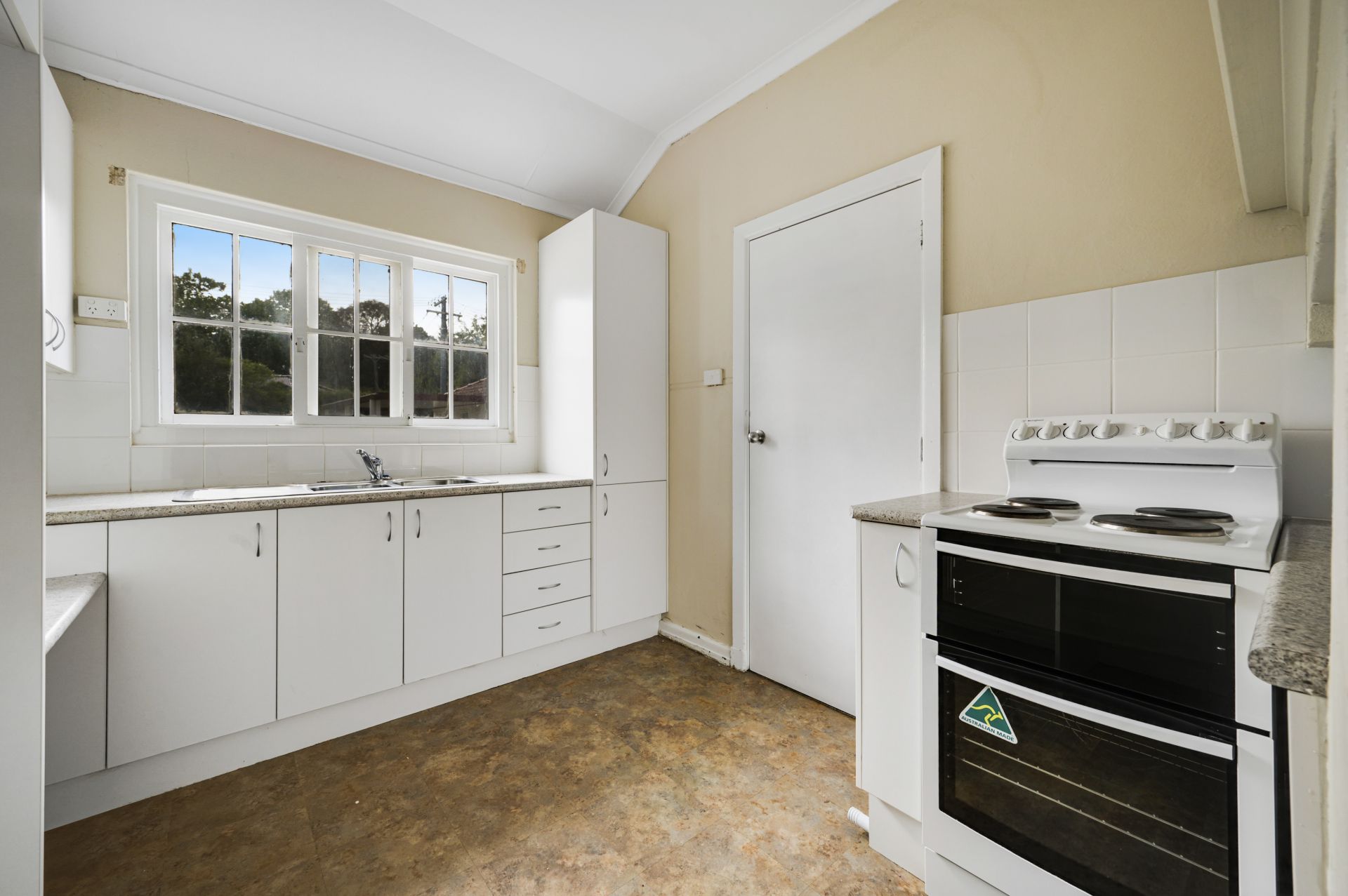 - Eat in kitchen with upright electric oven and cooktop