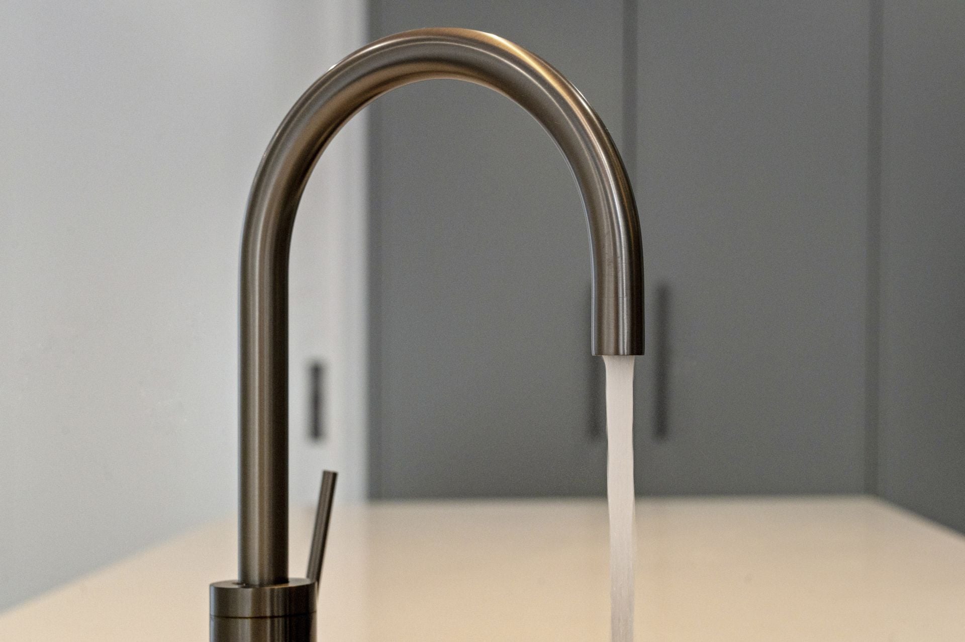 - Designer kitchen with waterfall stone benchtops & Bosch appliances