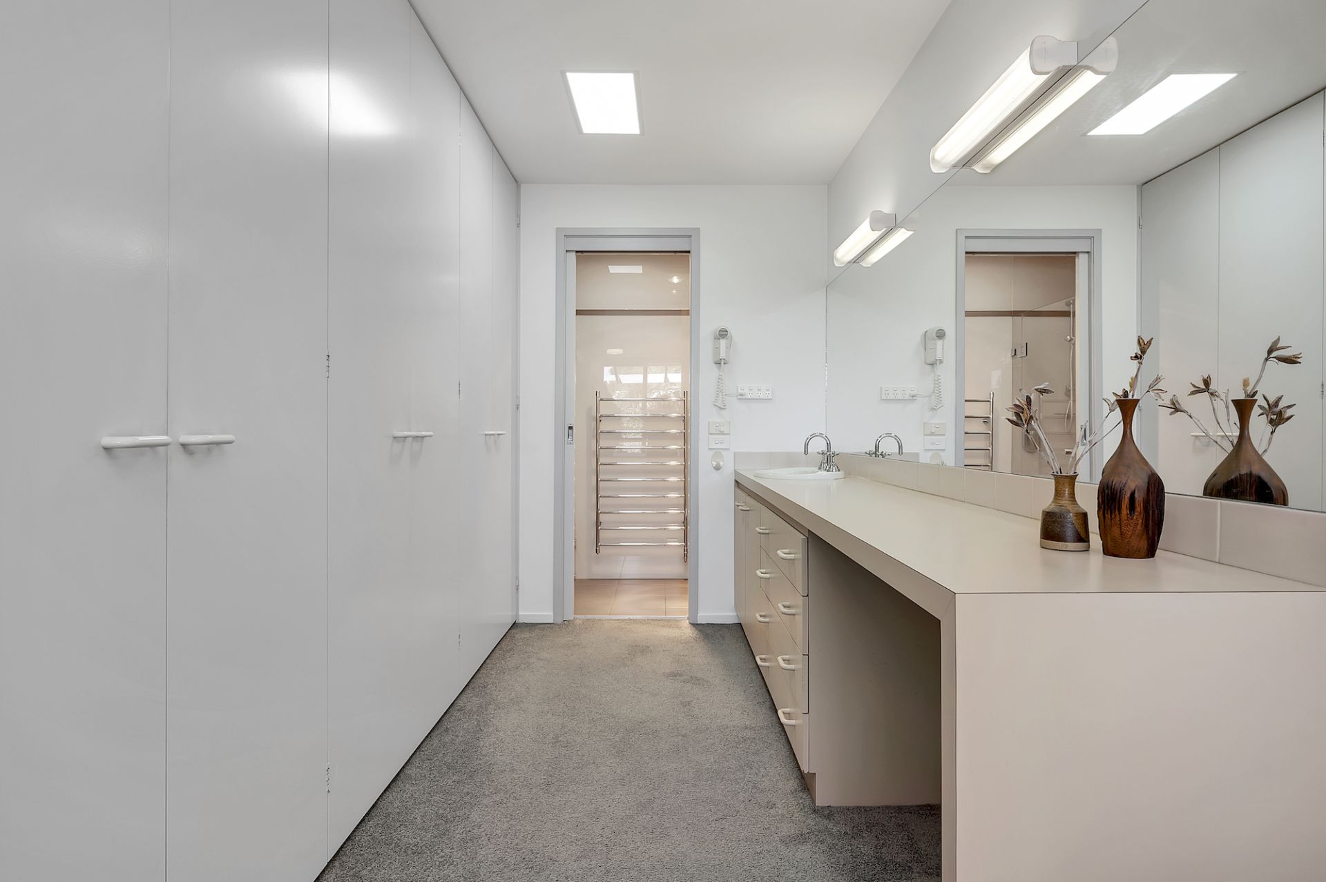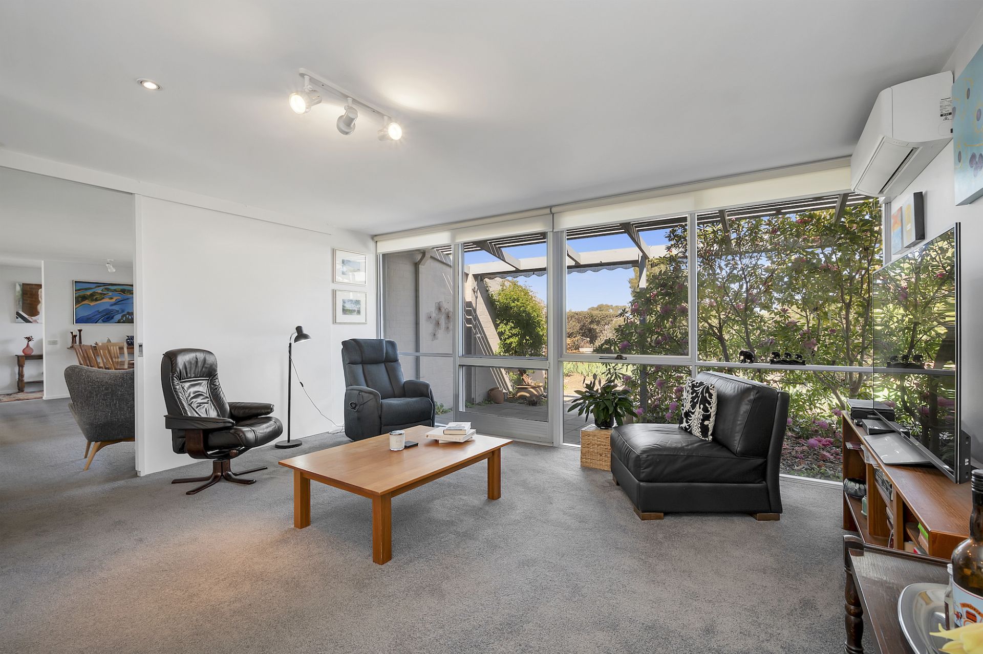 Villa #11 is a testament to contemporary living, boasting expansive floor-to-ceiling windows that frame breathtaking panoramic views of Woden Valley and the surrounding hills. The smart northern orientation ensures that the home benefits from ample natural light throughout the day, creating a warm and energy-efficient living space year-round.