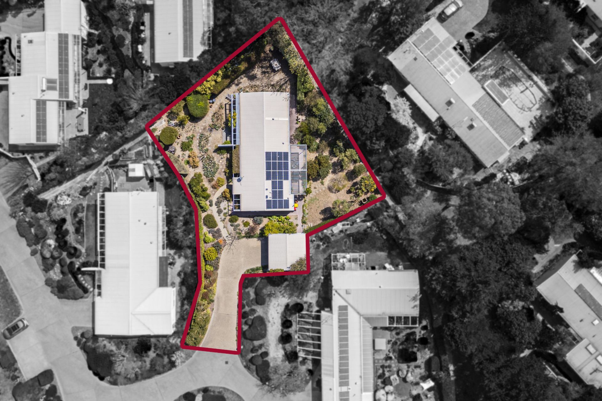 - Large land holding with wrap around, low mintenance gardens