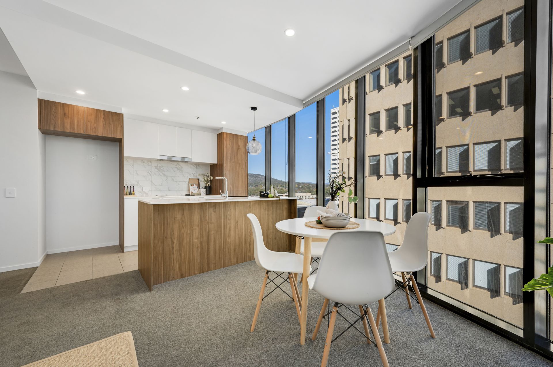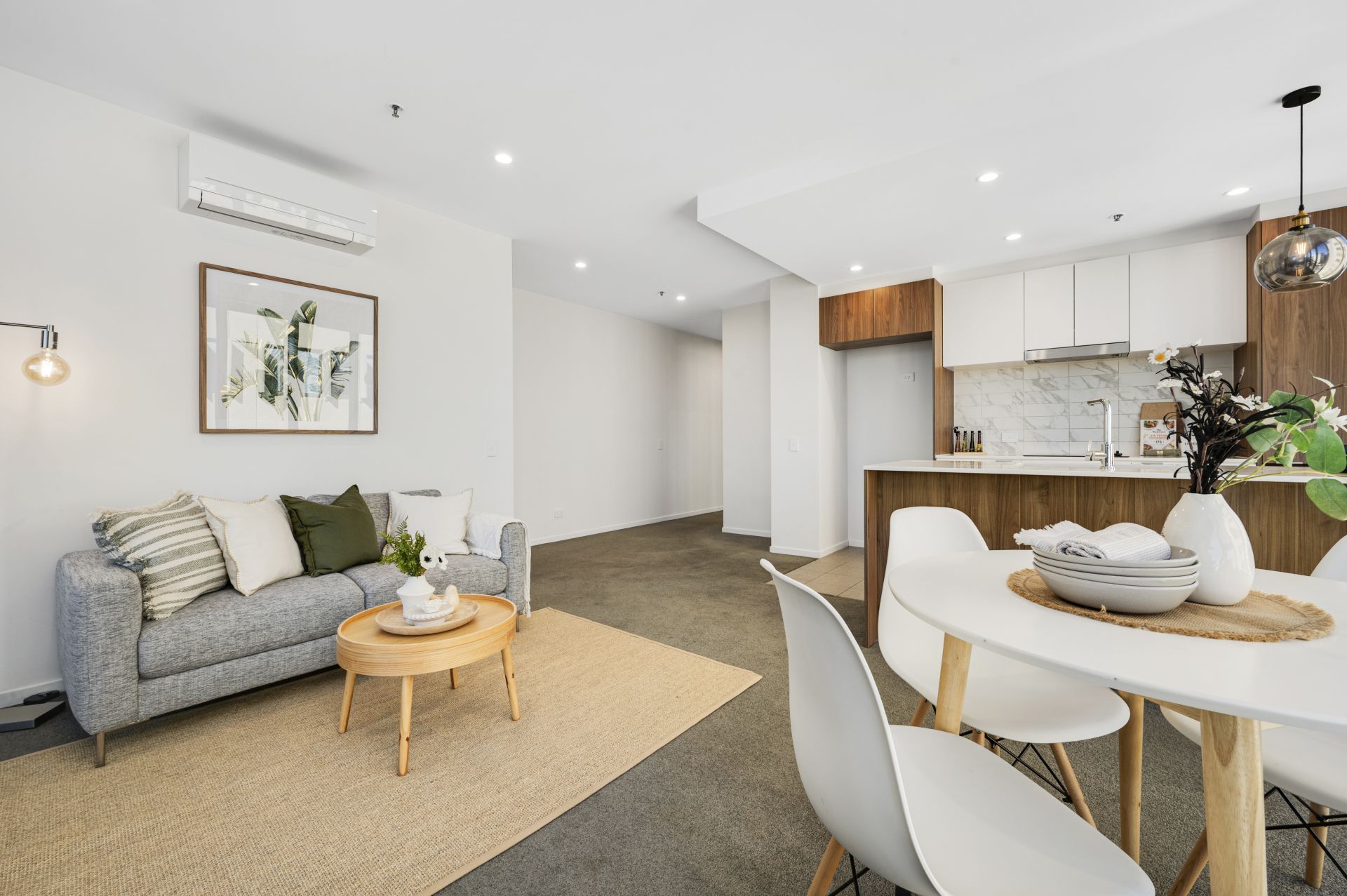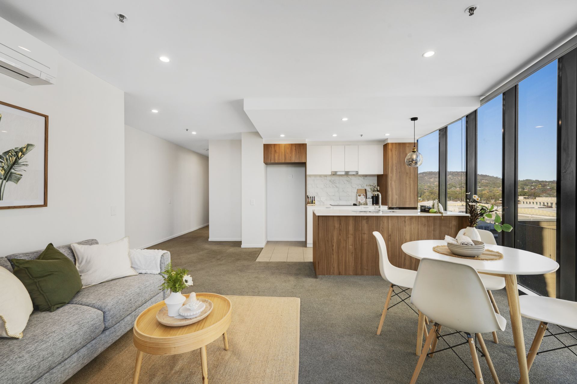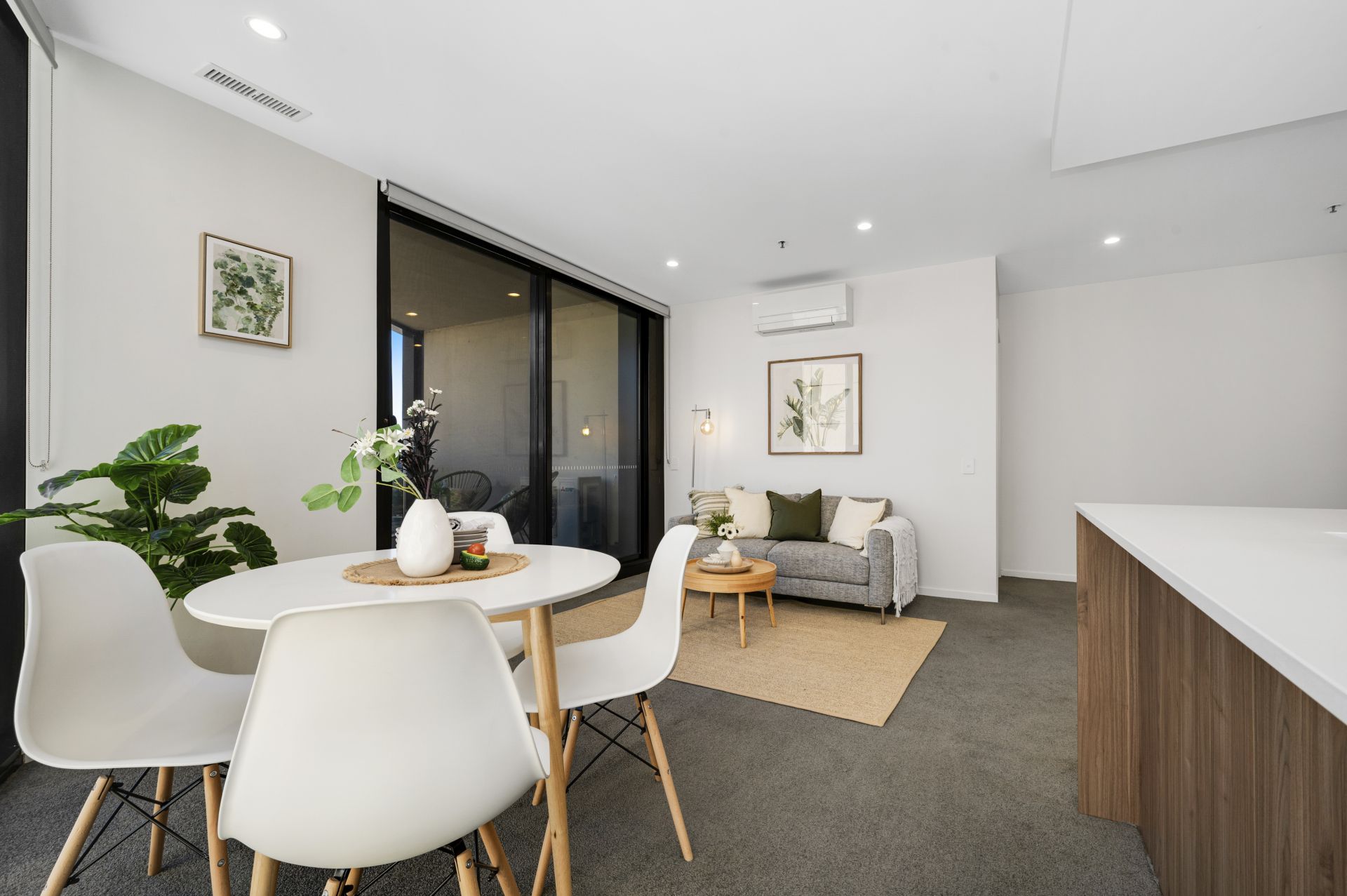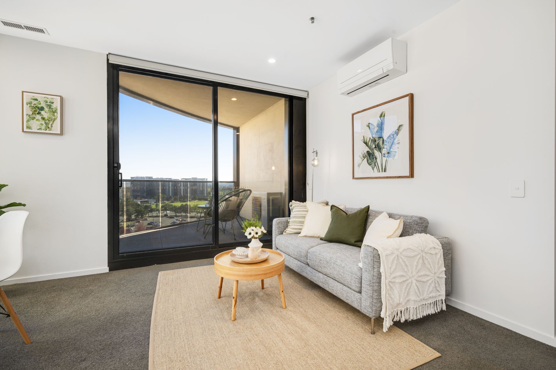 The open-plan living area seamlessly extends to the private balcony, creating the perfect indoor-outdoor flow. Both the main bathroom and ensuite feature high-end fittings and floor-to-ceiling tiles, while double glazing and reverse cycle air-conditioning ensure year-round comfort.